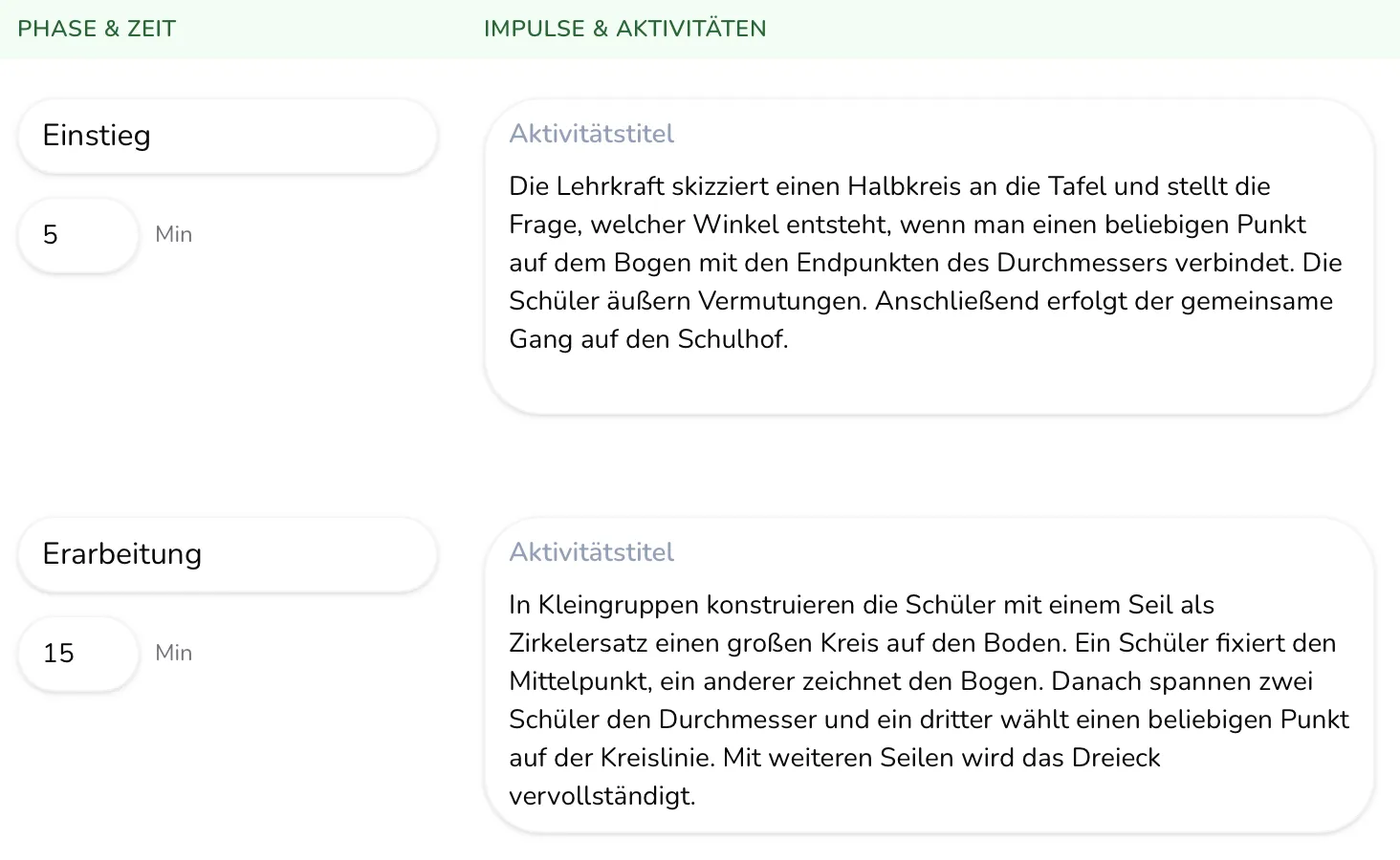 - Sinnvoll aufgebauter Stundenverlauf